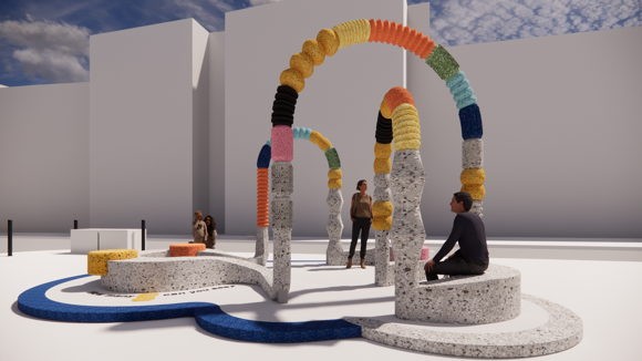 Among the highlights, Fountain of Technicolour Beads by One Bite Design will be installed on Clerkenwell Green, using terrazzo to explore Colour Vision Deficiency (CVD) through spatial design. Nearby, The Crinkle-Crankle Bench by StudioFolk introduces sculptural seating created from natural stone.
