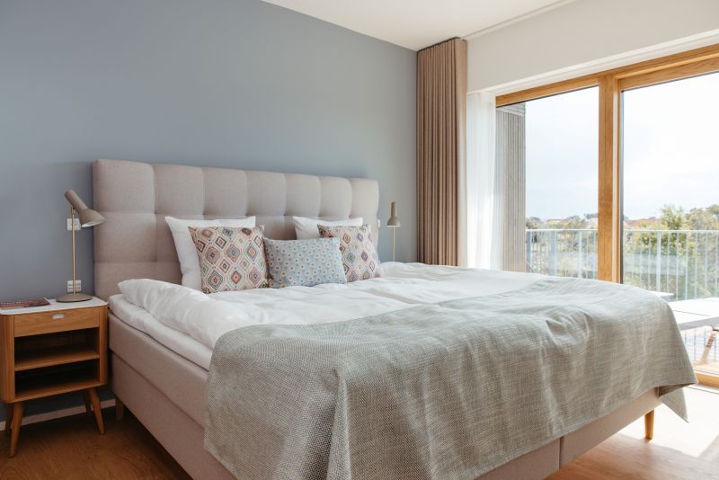 The clean design continues in the rooms. Bright tones, ample daylight, and natural materials create a tranquil environment. Upholstered beds, rattan and fabric seating, and well-placed details, such as lamps and plants, help create a tranquil retreat that combines state-of-the-art- art comfort with the individual flair of a boutique hotel.