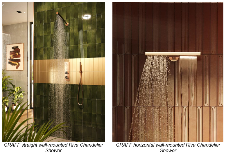 Bath and kitchen fixtures brand, GRAFF, is unveiling a new wall-mounted Riva Chandelier Shower, a beautiful evolution of the sculptural ceiling-mounted showerhead.