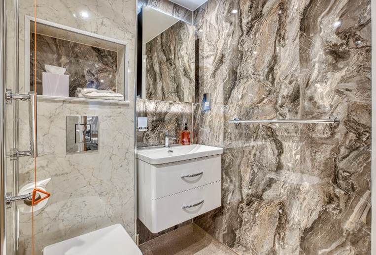 Multipanel’s grout-free, fully waterproof wall panels offered the ideal solution. Their smooth, tile-effect surfaces create a fresh and elegant finish, helping to elevate the visual standard of each bathroom. The panel system, which is made in the UK, allowed the care home to achieve a premium, homely aesthetic while meeting strict hygiene and safety requirements.