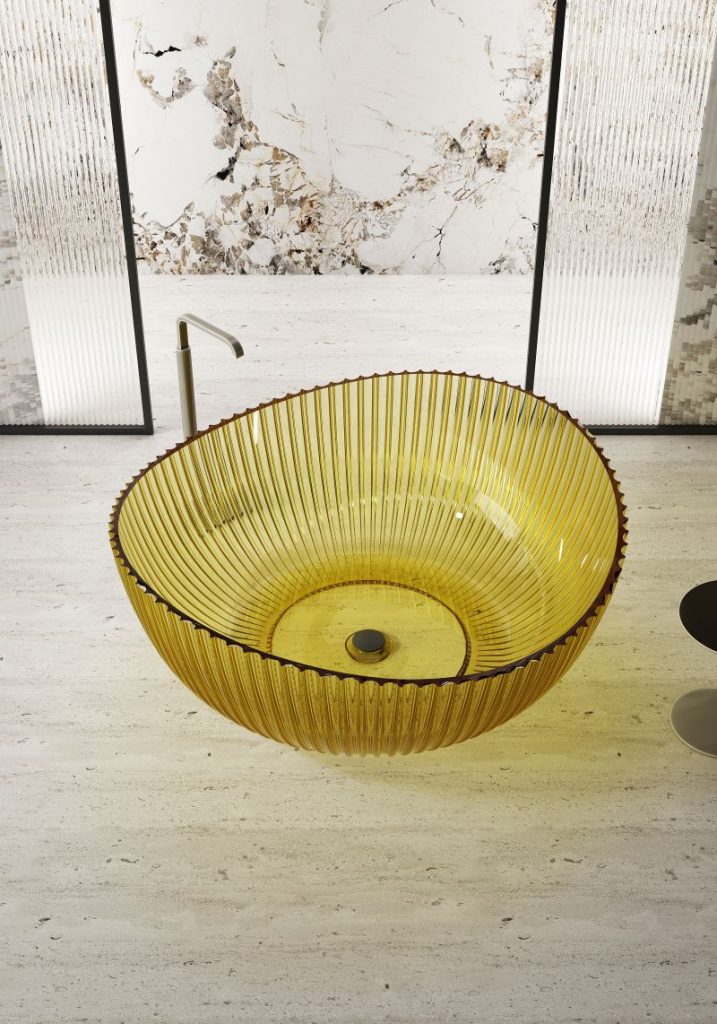 The collection features lightweight acrylic shapes and luminous resin centrepieces, reflecting the growing trend for sculptural forms, rich colour, and serene, spa-like spaces. With hues like Black, Blue, Amber, Red, and Turquoise, the designs offer a striking way to elevate any bathroom with a focus on both style and wellbeing.