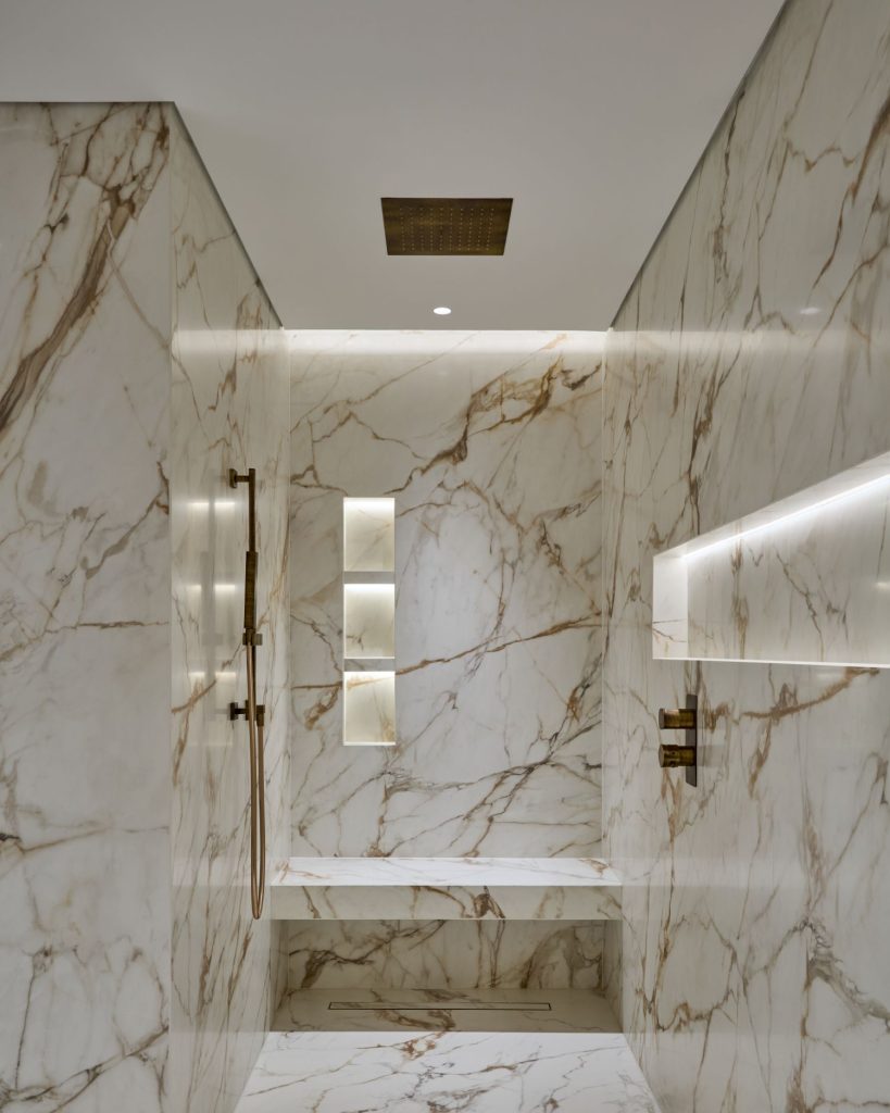 Particular attention to detail is evident in the choice of finishes. In the wellness area, Ritmonio’s Taormina taps in a Brushed Dark Bronze finish were selected for their sophisticated design and refined versatility. The taps’ gentle, organic curves and dark, textured finish create an elegant contrast with the light tones and natural materials that define the interior. The dark hue of the Taormina series adds a touch of richness to the space, elevating the design while remaining understated.
