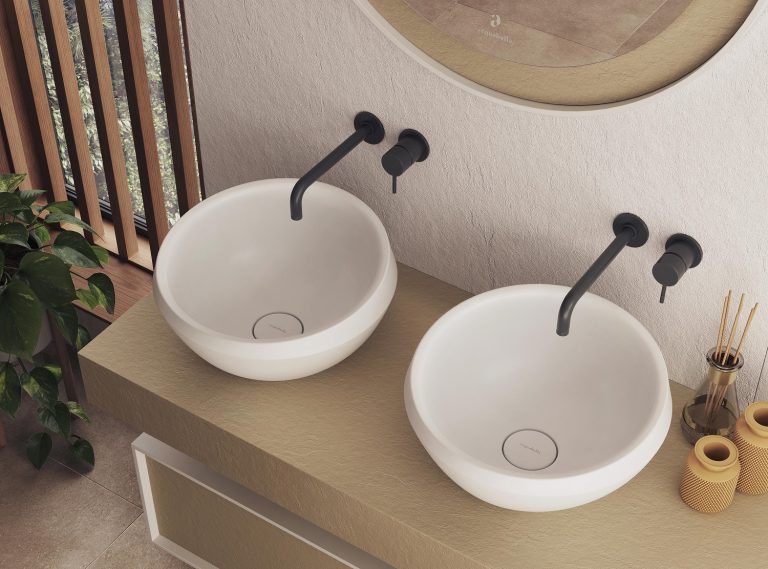 Countertop basins are an enduringly popular choice for consumers as they make an immediate design statement. In Acquabella’s range, designers can choose from the beautiful Acquawhite collection, which incorporates the Levi and includes both rectangular and circular models. Vars and Venet deliver circular, square and rectangular basins. All basins are made from Acquabella’s newest resin and mineral material, the antibacterial, easy mould Dolotek.