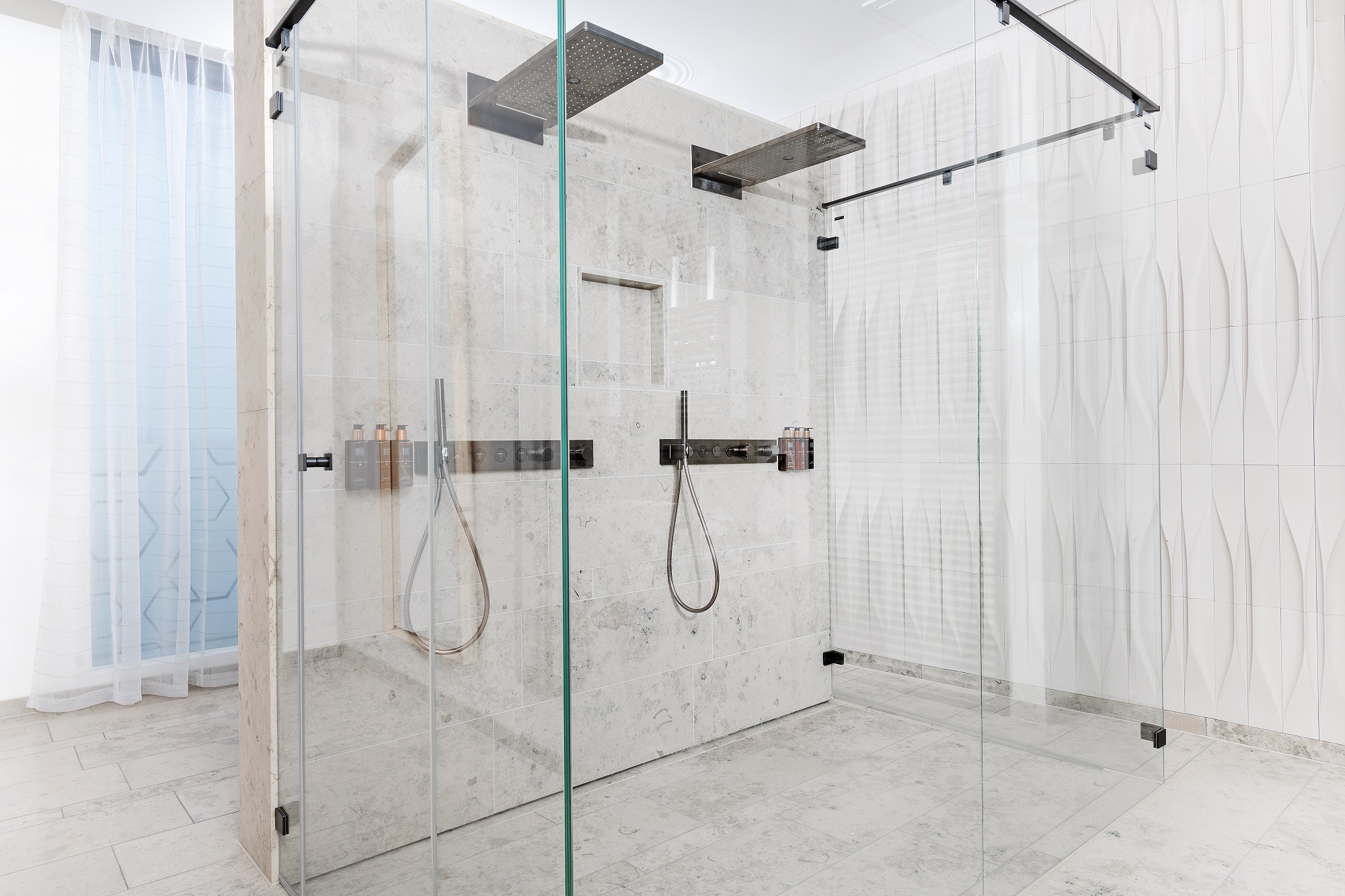 Unidrain are very proud to have supplied HighLine Custom drains to The Hub; in the main bathroom and specifically crafted for this space, the classic Unidrain grating has been replaced by marble tiling creating an exact match to the rest of the bathroom floor, here the line drain blends into the flooring and is almost invisible to the eye.