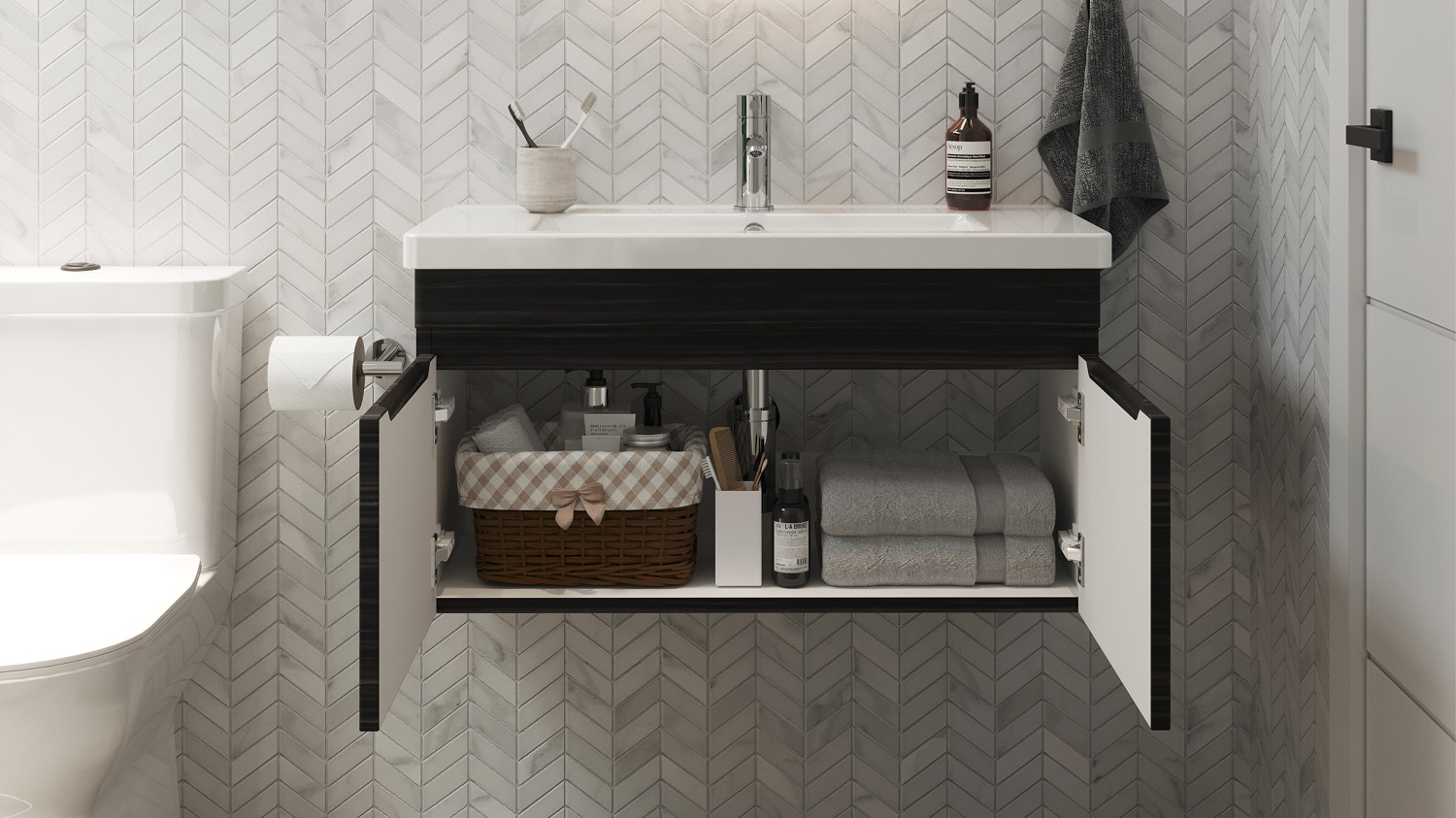 Due to the increase in residential apartment complexes across the UK, we are seeing a reduction in bathroom space as our homes become considerably smaller. Saneux has some standout furniture ranges that help maximise the bathroom area whilst providing great storage solutions. These latest space-saving options are simply executed thanks to Saneux’s innovative design.