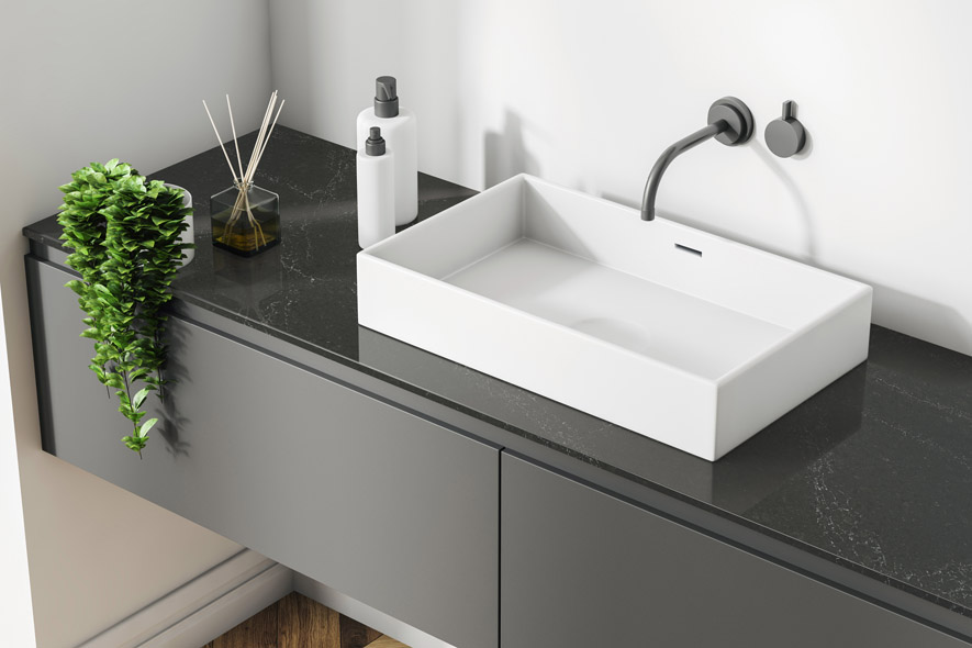 Combining all the practical benefits of quartz with all the beauty of marble, CRL Quartz Siena has a dark and sophisticated character that makes it the perfect choice for the contemporary kitchen or bathroom.