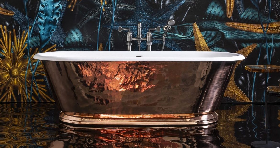 The hammered copper tamar is a compact, double-ended bath with a perfectly proportioned contemporary skirt. The comfortable roll-top design is finished with a copper exterior wrapped around the tub, giving the look and beauty of copper but with the durability of cast iron.