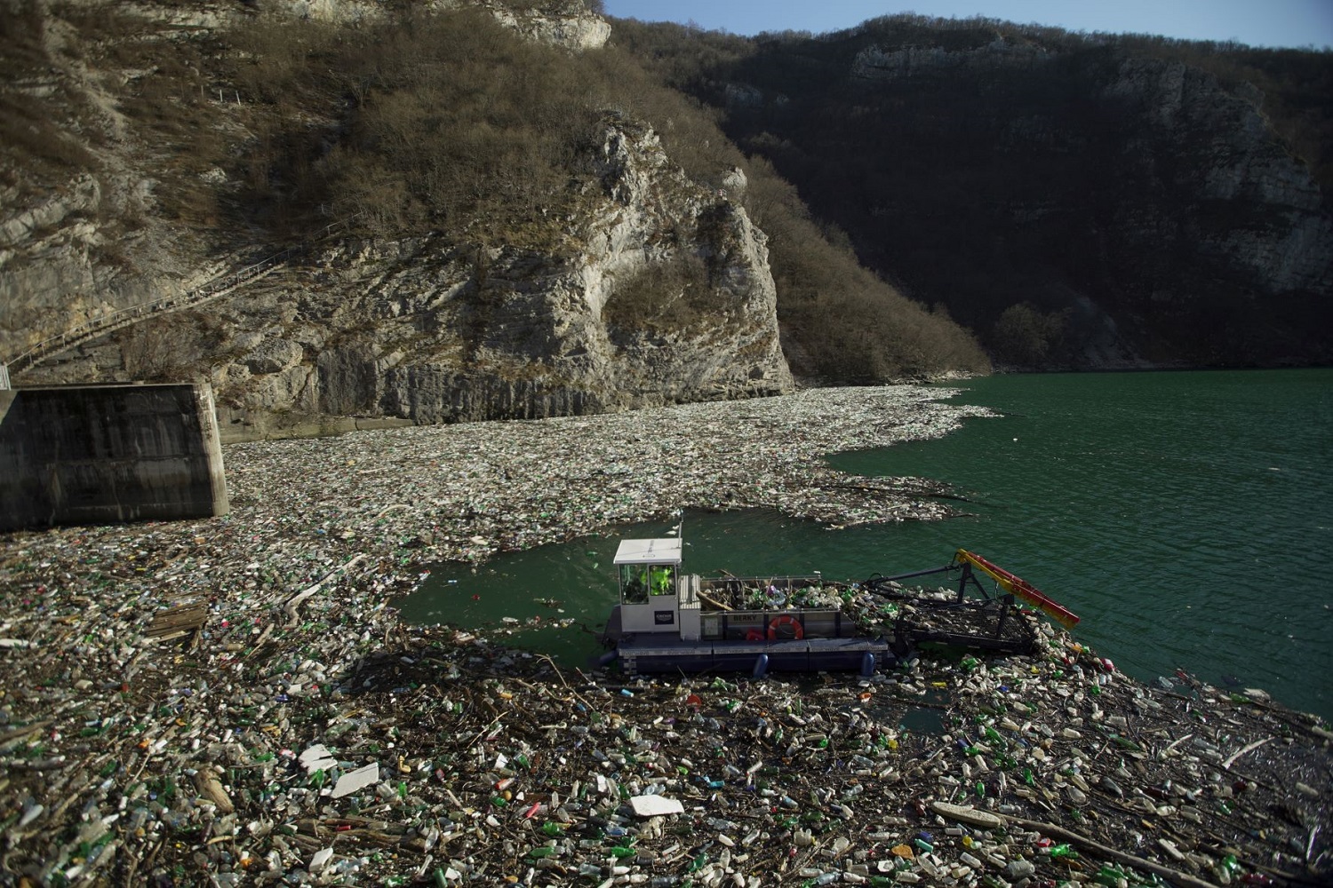 Image top and middleThe Bočac Reservoir in Bosnia and Herzegovina before, during and after the GROHE and everwave clean-up activity in February 2022
