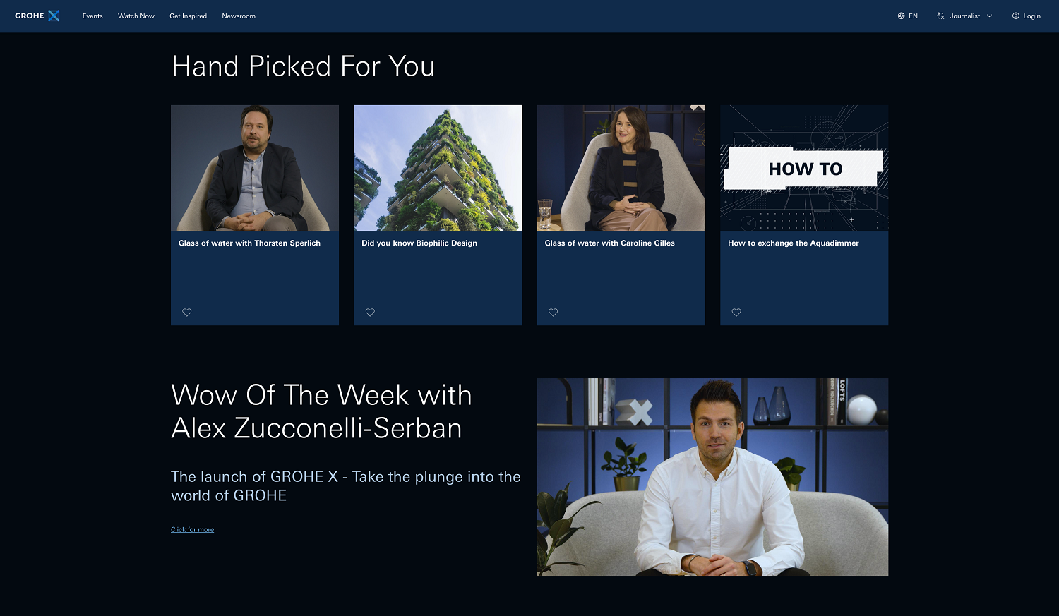 The comprehensive brand platform offers informative multimedia content to GROHE’s professional business partners and consumers. Tailored to visitors’ different needs and interests, a customised programme of content is offered to respective target groups. During the launch week, more than 8 events, ranging from a premiere keynote for media and a panel talk on consumer insights, to a deep-dive session on installer services, were hosted. Meanwhile, architects, designers and business partners sought out discussions on topics such as ‘Strategies for Future Living’ and ‘Green Buildings’. Videos and live sessions have already been viewed almost 70,000 times and are now available as on-demand content on the hub.