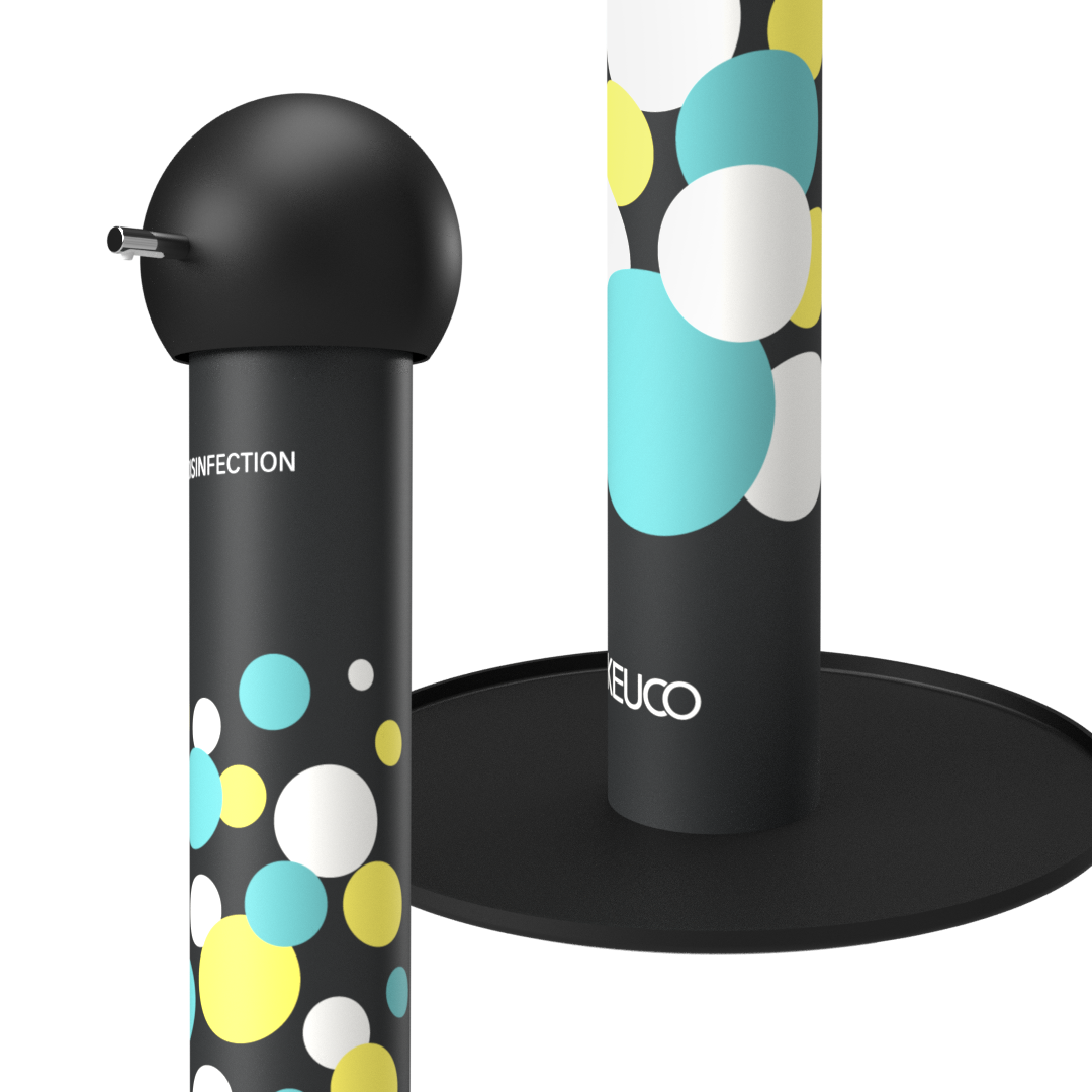 Simple to operate: just press the big buzzer to dispense the sanitiser. The storage container is discreetly hidden inside the column and can be easily refilled with a liquid or gel sanitiser of your choice. KEUCO offer an extensive variety of colours and colour-combinations including plain coloured, multi-coloured, black and white or elegant metallic; for multi-site requirements there are bespoke options with specific branding.