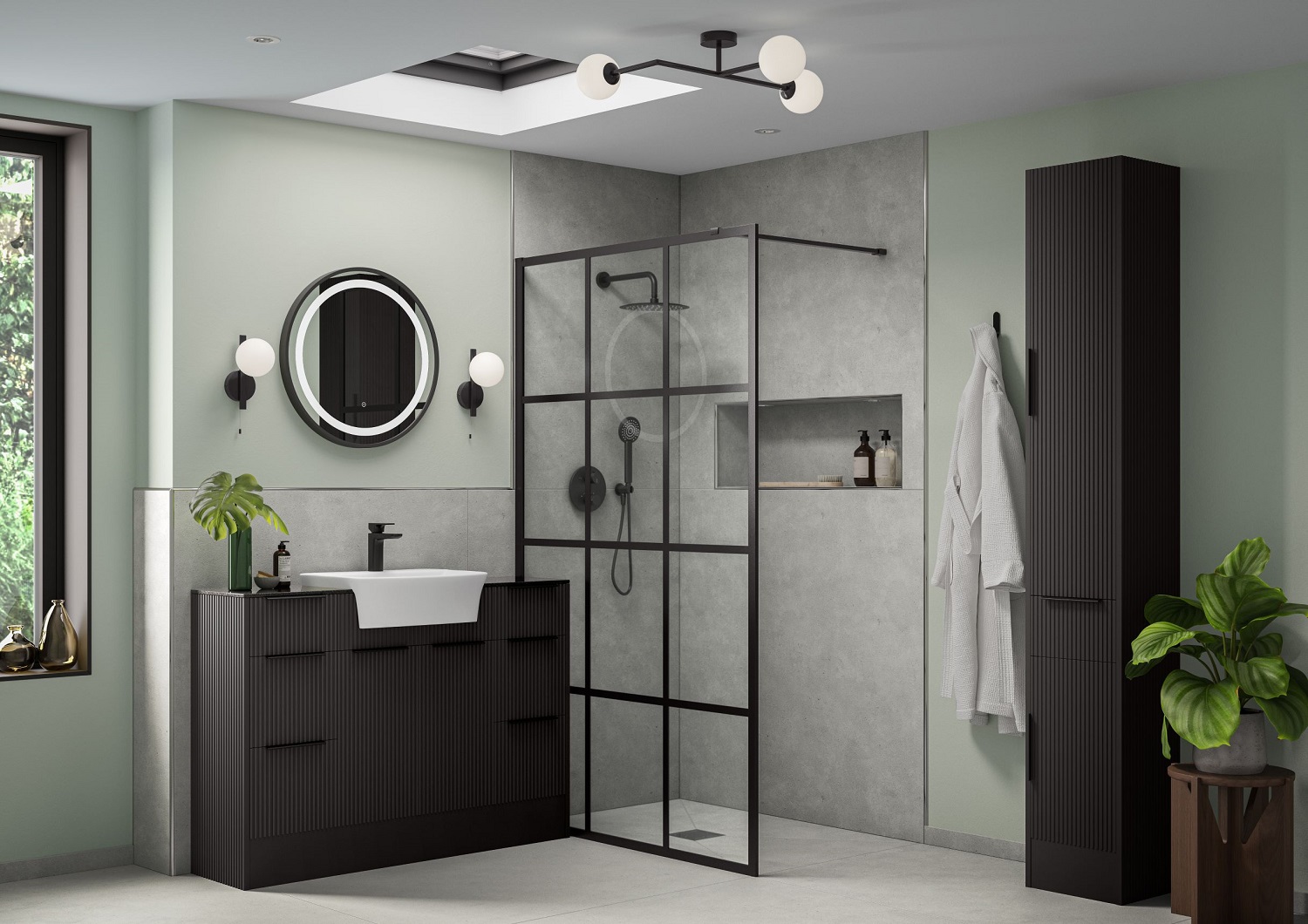 An elegant soft fluted, tactile design creates an aesthetically pleasing play with the light and the range is a perfect choice for adding individuality to bathroom schemes. What’s more, with three handle choices in Matt Black, Brushed Brass or Chrome, designers can coordinate with other products in the scheme, like, as pictured, with Matt Black brassware, shower, enclosure, mirror and lighting.