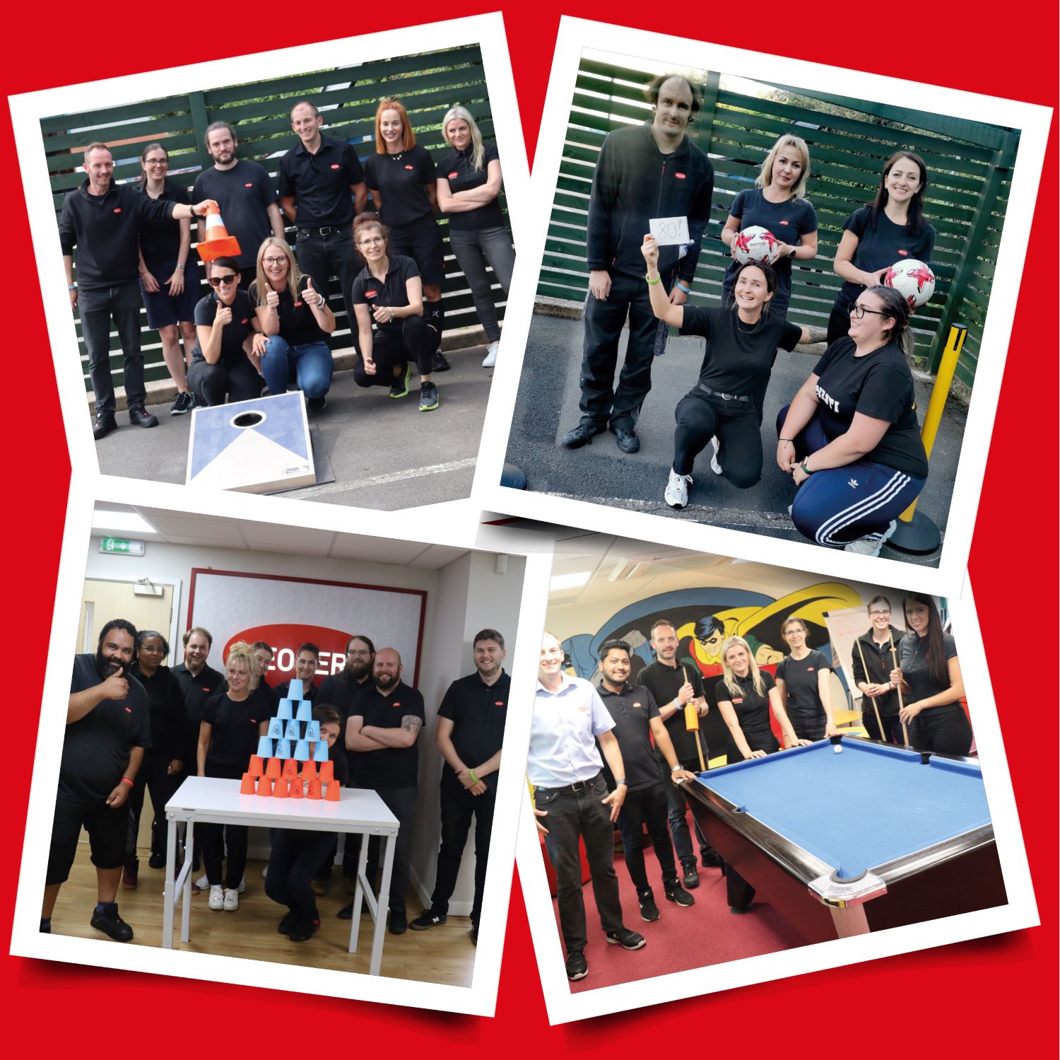 The event was the idea of the company’s Value Ambassadors. All 150+ staff based on the Malvern site were invited to join, and teams were created combining staff from different departments and shifts. Five games were played over five weeks, including Football, Speed Pool, Netball Goals, Pyramid Cup Challenge and Cornhole.