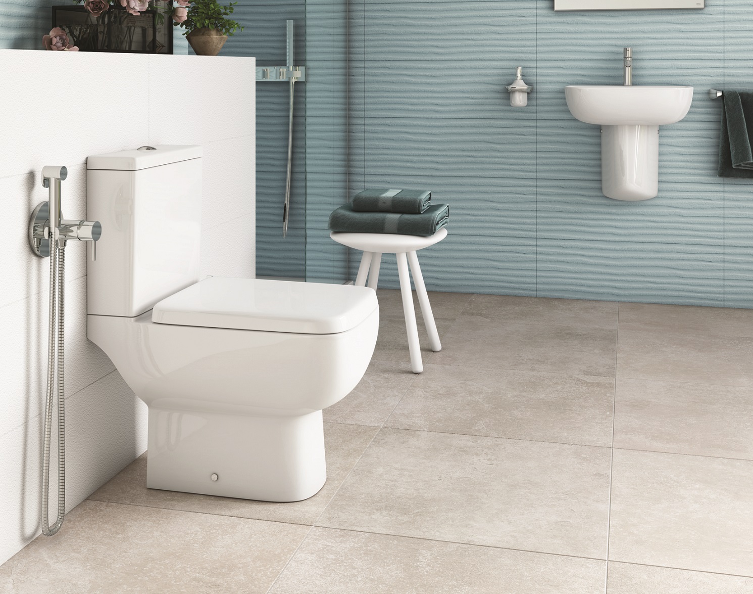 - Solutions for sanitaryware (WC, bidets, washbasins, toilet seats and lids, rinsing systems) treated with RAK-ProTeK glaze fired at high temperatures onto the ceramic to guarantee a smoother antibacterial surface, unlike standard ceramic material with its rougher surface.