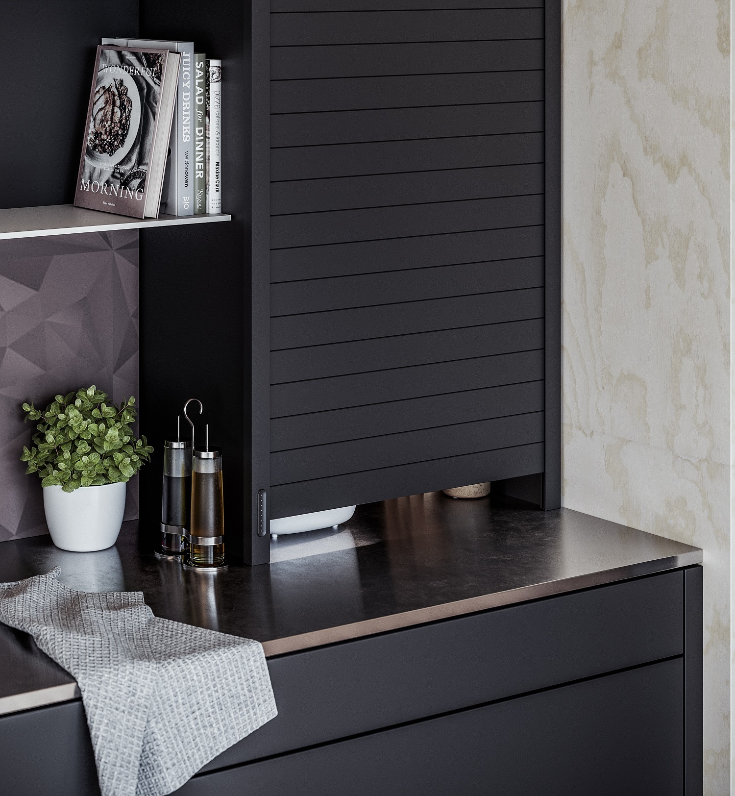 While folding and hinged doors can get in the way, tambour doors feature a roller shutter design to maximise room functionality. With the option to use horizontally or vertically, RAUVOLET systems are adaptable to different space parameters, too.