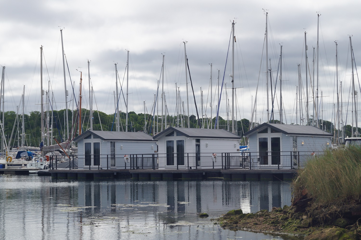 The challenge for pontoon supplier, Intermarine and lodge manufacturer, Trojan Timber,  was to work out the most efficient waste discharge from the bathrooms and kitchens with least possible disruption to customers and marina staff. Pumps were always going to be needed in the lodges themselves, but collection and storage was the biggest stumbling block and ideas such as manual collection with a waste trolley or a separate floating tank were considered but rejected.