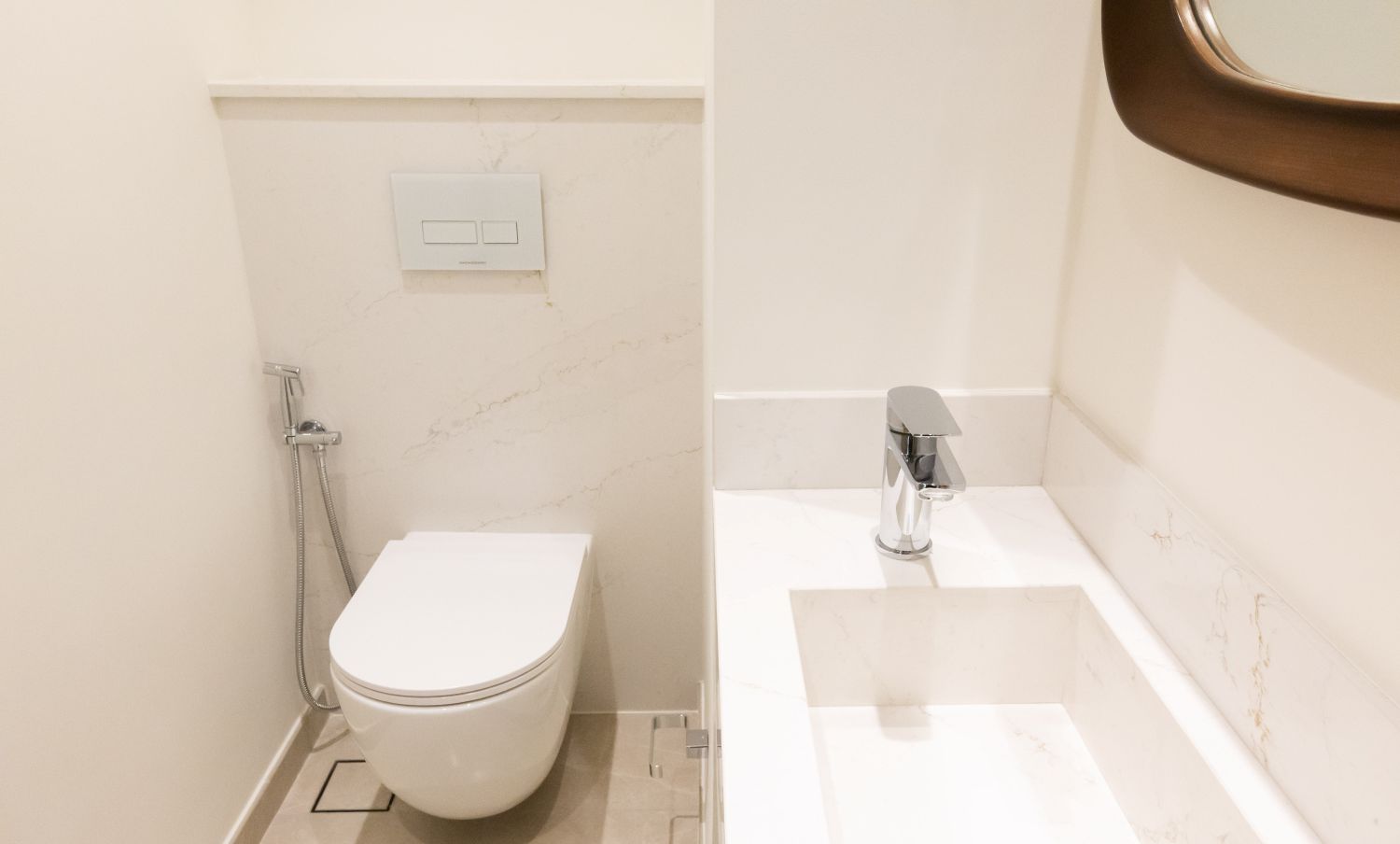 Bathrooms are fitted with contemporary BAGNODESIGN chrome brassware, including basin and shower mixers, overhead and hand showers, and coordinated accessories. Each vanity is complemented by a hotel-style mirror with a x3 magnification function, while freestanding bathtubs in the three-bedroom apartments and penthouses elevate the sense of indulgence.