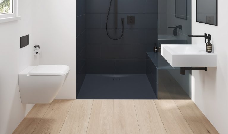 The BetteFlat can be installed in bathrooms in which the user’s movement areas for the shower, washbasin and WC are overlapping. With a gradient of less than two percent, half of its total area can be counted as a movement area. This allows a bathroom of high aesthetic quality to be realised, even with a compact floor plan of only four square metres.