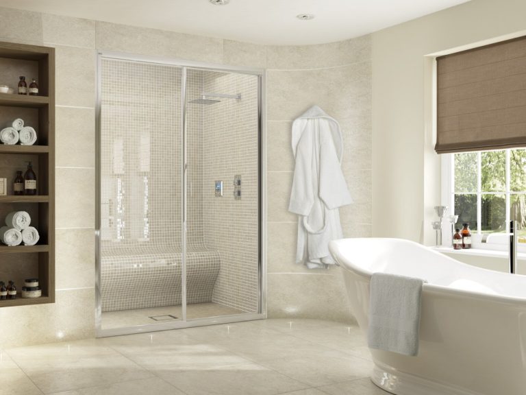 Sliding doors such as the ES300 shown below are ideal for wetroom style recess showers. The ES260 is a bi-folding door option – an ideal solution for smaller bathrooms.