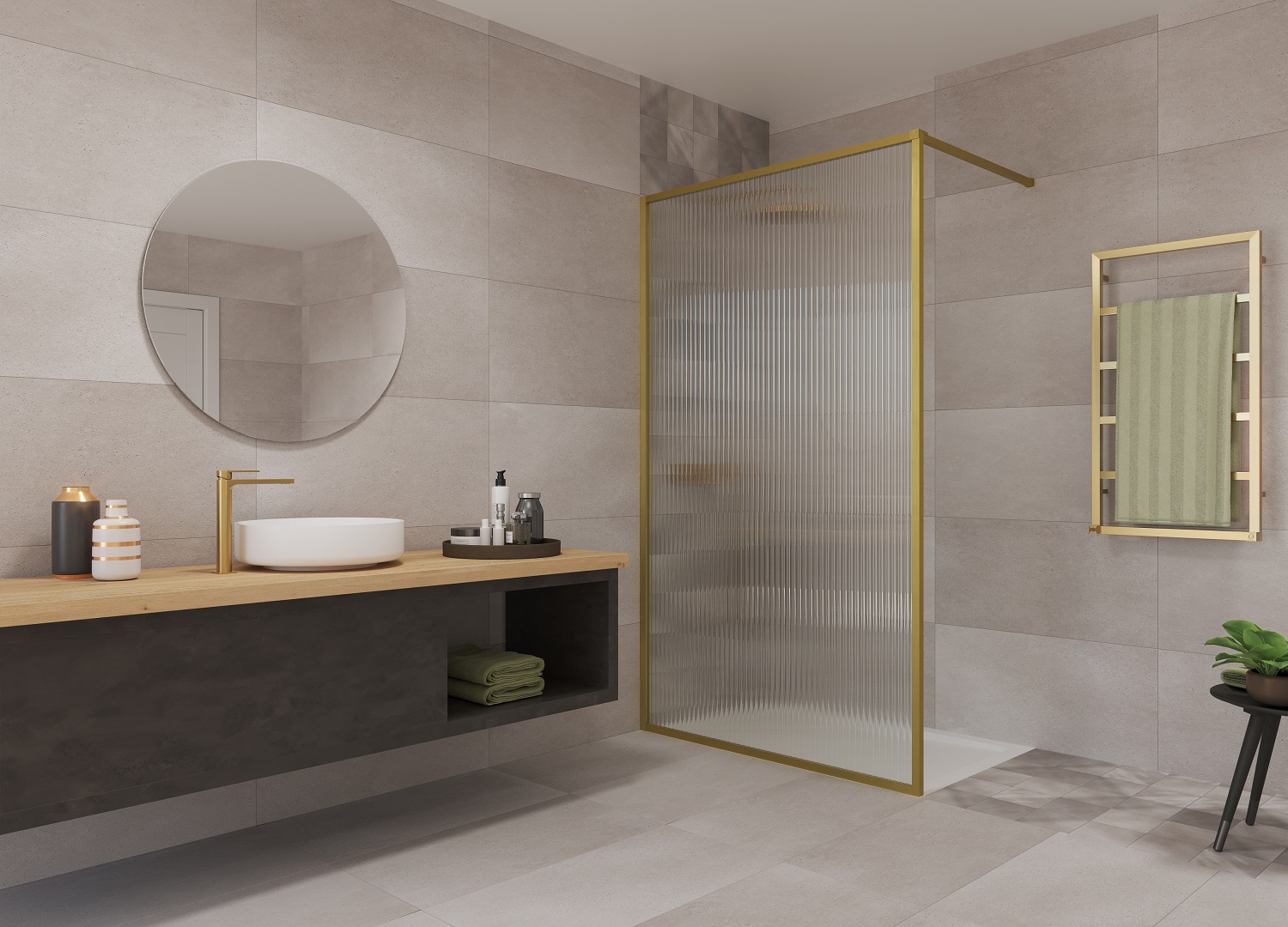 The gorgeous new fluted glass fixed panel in brushed gold is a real head turner. The style-informed effect of the fluted glass creates a gentle rippling effect which is bang on-trend for AW22/23.