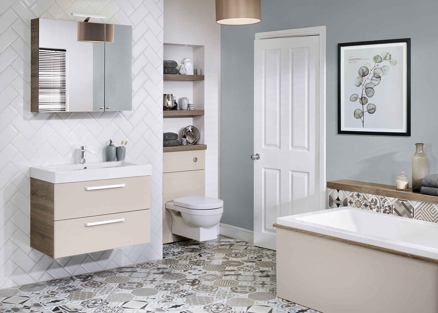 In addition to the new finishes, the collections have also benefited from further range developments. Symmetry, the elegant curved furniture range available in fitted, freestanding and wall mounted configurations, has been extended with the addition of a central two door washbasin unit and curved single base units in left and right hand options as well as two additional cladding panel finishes in Glacier Grey and Coastal Oak.